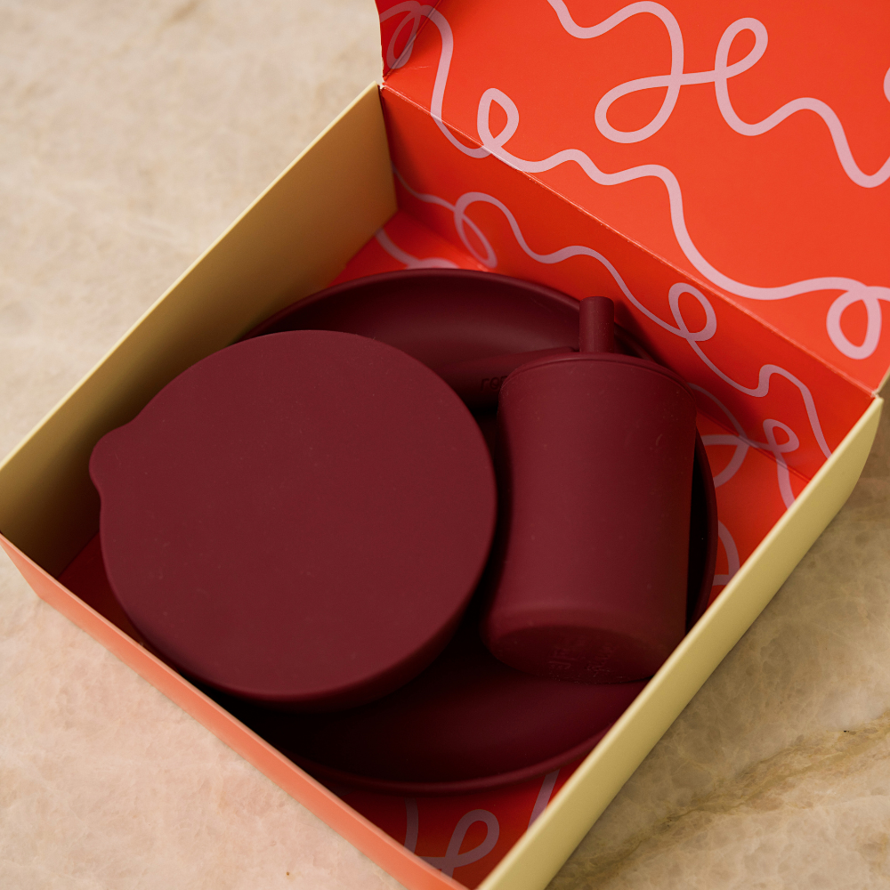 Everything you need for mealtimes, in one beautifully designed set. Made from premium, LFGB-grade silicone, this dinner set includes a Silicone Sippy Cup with Straw and Lid, Silicone Bowl with Lid, spoon, and plate, thoughtfully designed for everyday family use.