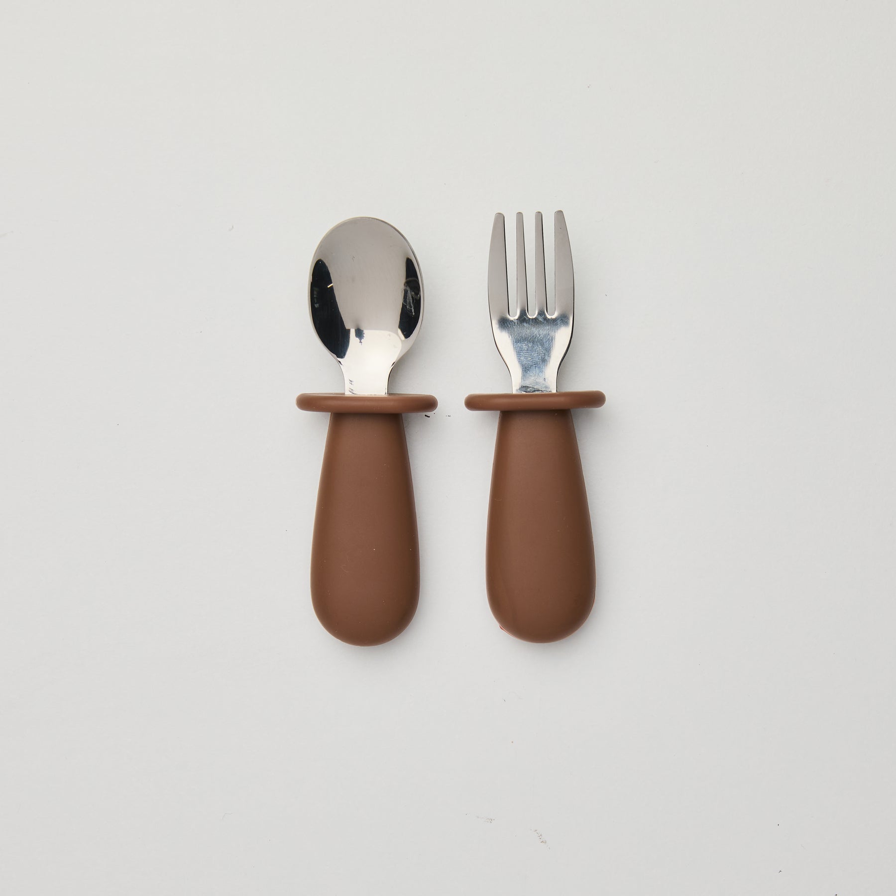The Rommer toddler cutlery set includes a spoon and fork, designed to help toddlers build confidence as they learn to self-feed. The chubby, soft-touch silicone handle is easy for small hands to grip, while the stainless-steel head helps toddlers learn how to scoop with the spoon and secure bites of food with the fork, preparing them for a smooth transition to grown-up cutlery.